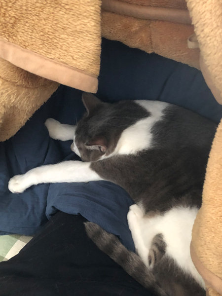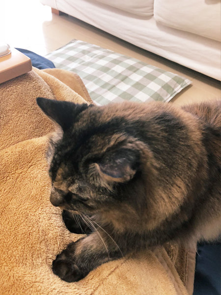 お布団でオンちゃんの進化を見ているだけで