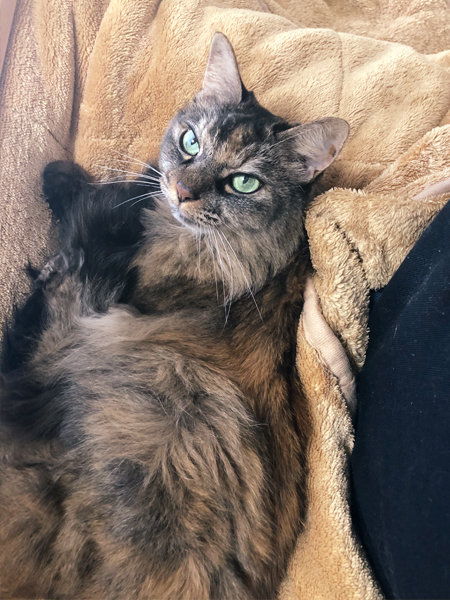 何故か私のひざの上に伸びるおもちちゃん。