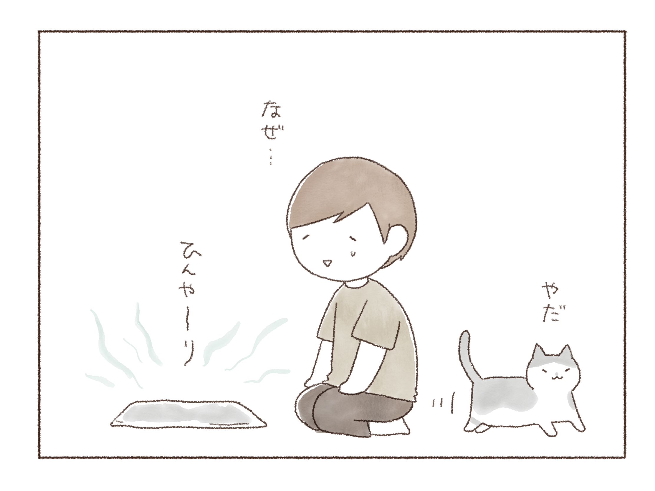 確かに、上に乗せたら「なにこれ?!」みたいな顔して飛びのいたのでぷにぷにが嫌だったんですかね~ラグやタオル乗せても避けてたので、諦めてシートには旦那さんの足を冷やす役目を頑張ってもらおうと思います…
