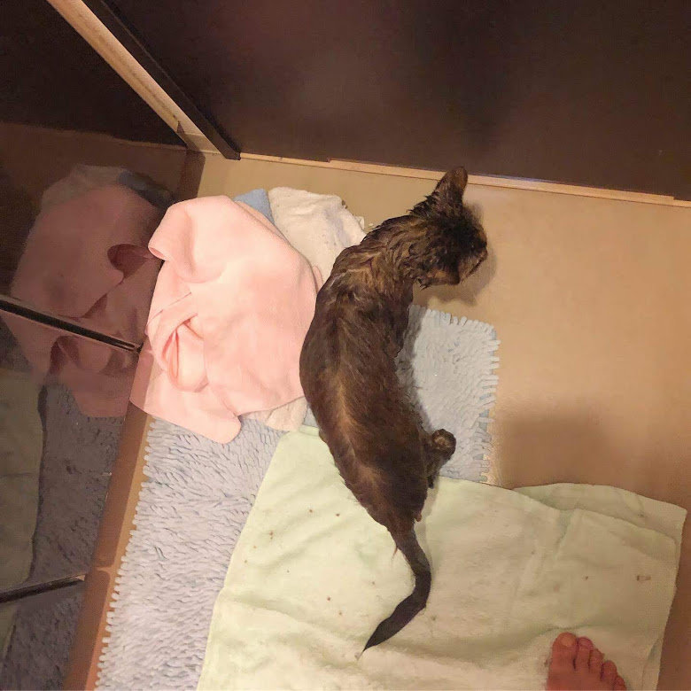 が…ハルちゃんは恐怖で固まっていたので、すごく楽だったのですが、人生(猫生?)初の「お湯に浸かる体験」に衝撃を受けたオンちゃんが「溺れる!」と思ったのかこの世の終わりみたいな悲鳴を上げたのでビビりました…