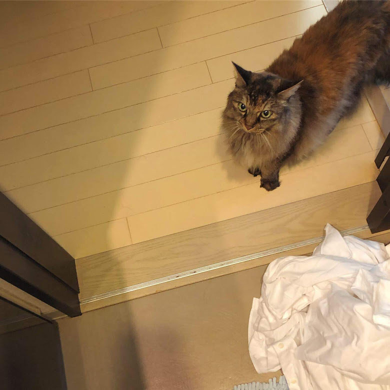 寝ようとする私に、ごはんのおかわりをぐいぐい要求するオンちゃん。…ち、ちか…近い…!(クリックするとインスタの動画に飛びます)