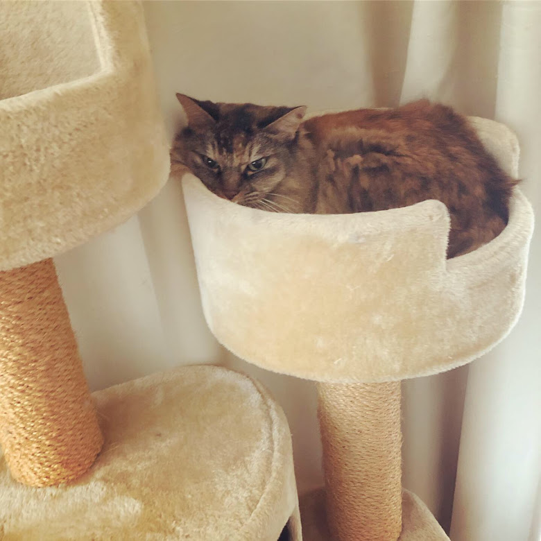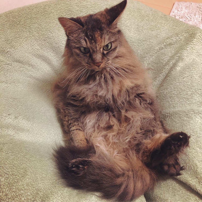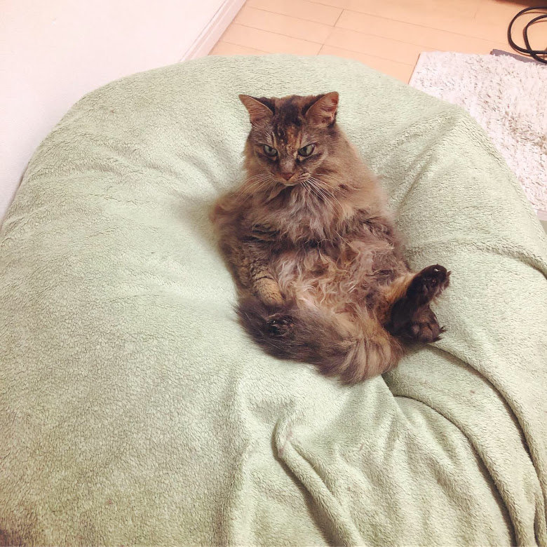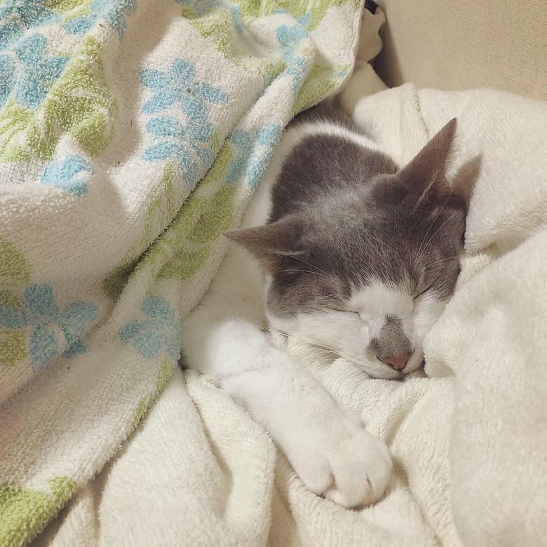 定期的にお見舞いに来てくれるものの、基本姿が見えないハルちゃんは何しているのかしら…とヨボヨボ見に行ったらこんなんなってました。…毛づくろいをしている途中で何をしていたのか忘れてボーっとしていたのかもしれない…