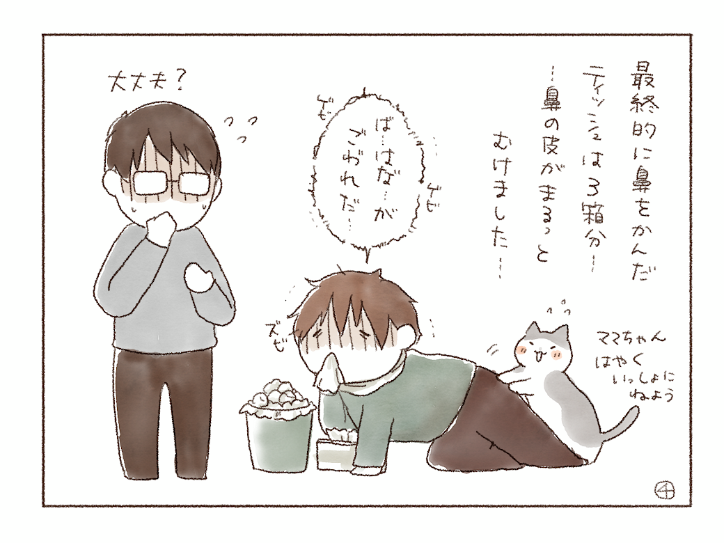 尾籠な話続きで恐縮なのですが、なんというか「くしゃみができない」というか「くしゃみにならない」というか…表現が難しいのですが顔が前方に向かって爆発する、みたいな…しんどい上に「面白びっくり人間」になってしまった…とうなだれる日々でした。