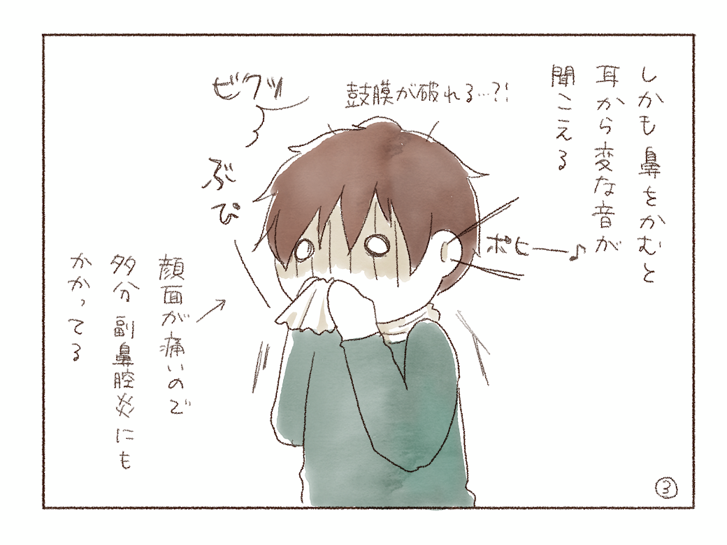 鼻が壊れた蛇口状態に…しかも何が辛いって味覚が全くなくなったことですね…温かい、冷たい、などの温度や歯ごたえしかわからず、本当に砂を噛んでいるようで食い意地の塊の私にはしんどかった…味覚が戻ってきた時に食べたシウマイ弁当のおいしさを私は忘れない…ありがとうシウマイ弁当…ありがとう、「…消化に良いものじゃなくていいの?シウマイ弁当が食べたいんだね…?」と困惑しながらも買ってきてくれた旦那さん…
