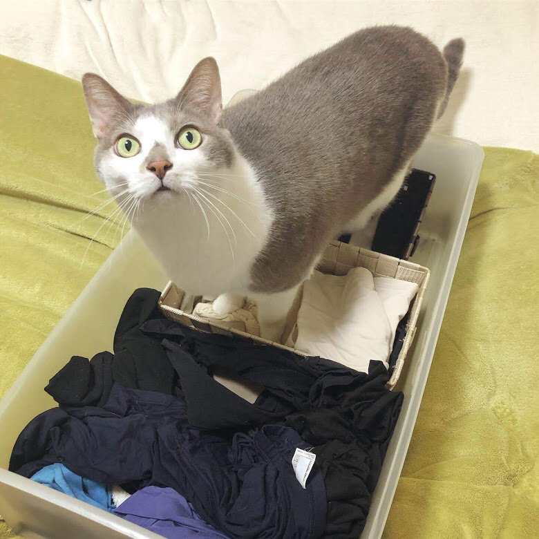 年末に向けてクローゼットの整理をしようとしたら、すぐさま何をしているのか見に来るおもち。