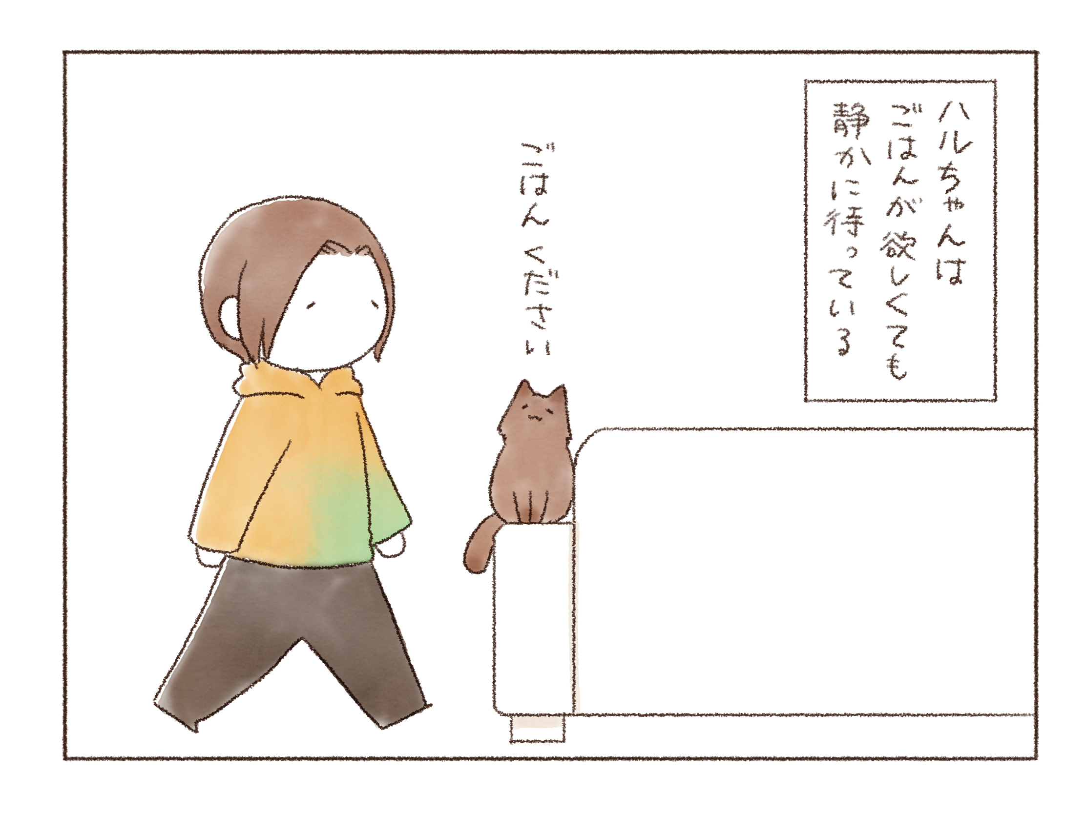 ただ、オンちゃんはさらに「ハルちゃんがごはんをもらっている時は自分もごはんをもらえる」と思っているので…