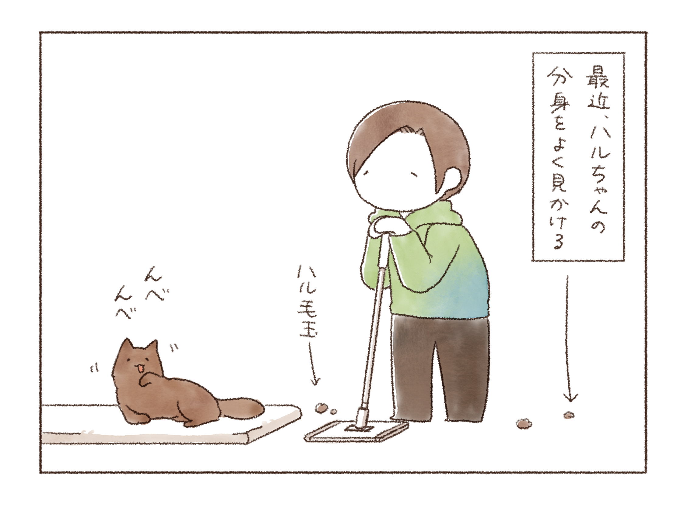 痛くないのかな…と心配になってしまう…そして、ハルちゃんが一生懸命に毛づくろいしたところが、なぜかいつも毛玉になってしまうという報われなさ…