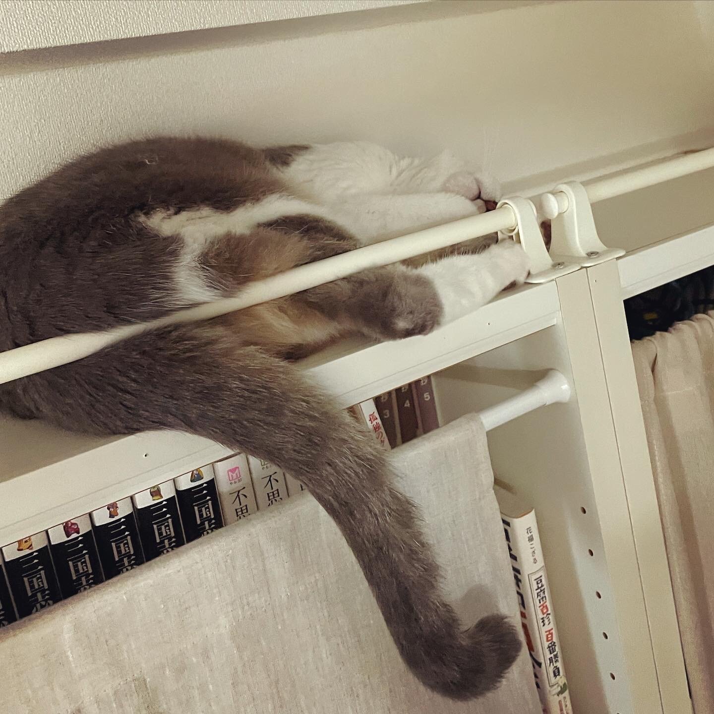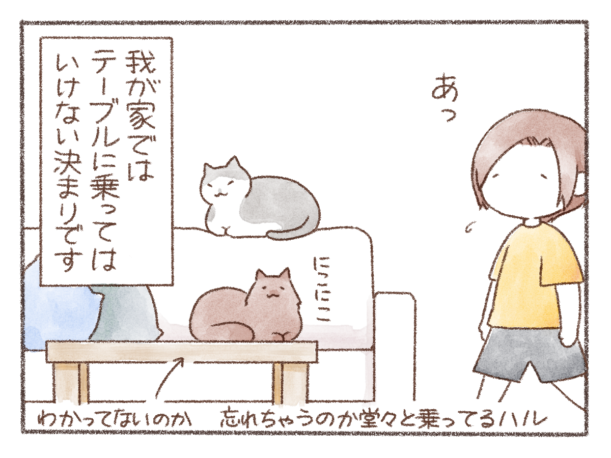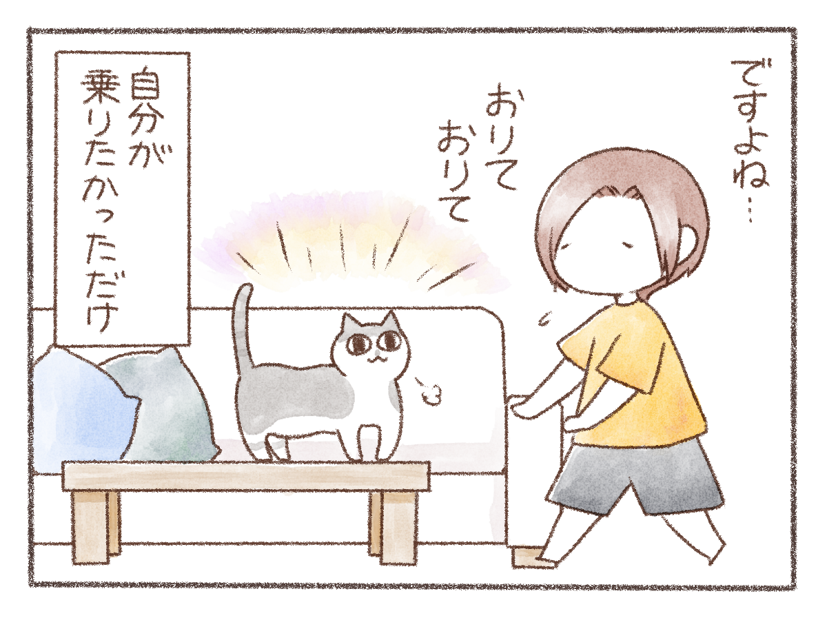 基本、人がいる時は乗らないのですが、いない時は乗ってるんだろうなぁ…賢いですね、猫って…