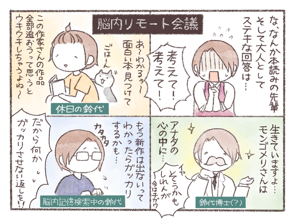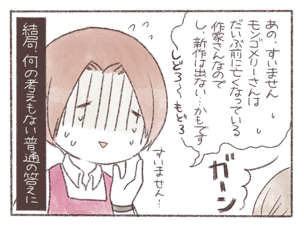 *書店員絵日記は今まで働いてきた様々な書店であった事なので、最近の事やかなり昔の事がごちゃ混ぜです。表情がわかり辛いので時期は関係なくマスクの描写は省略しています。また、お客様が特定できないよう色々アレンジしてあります。